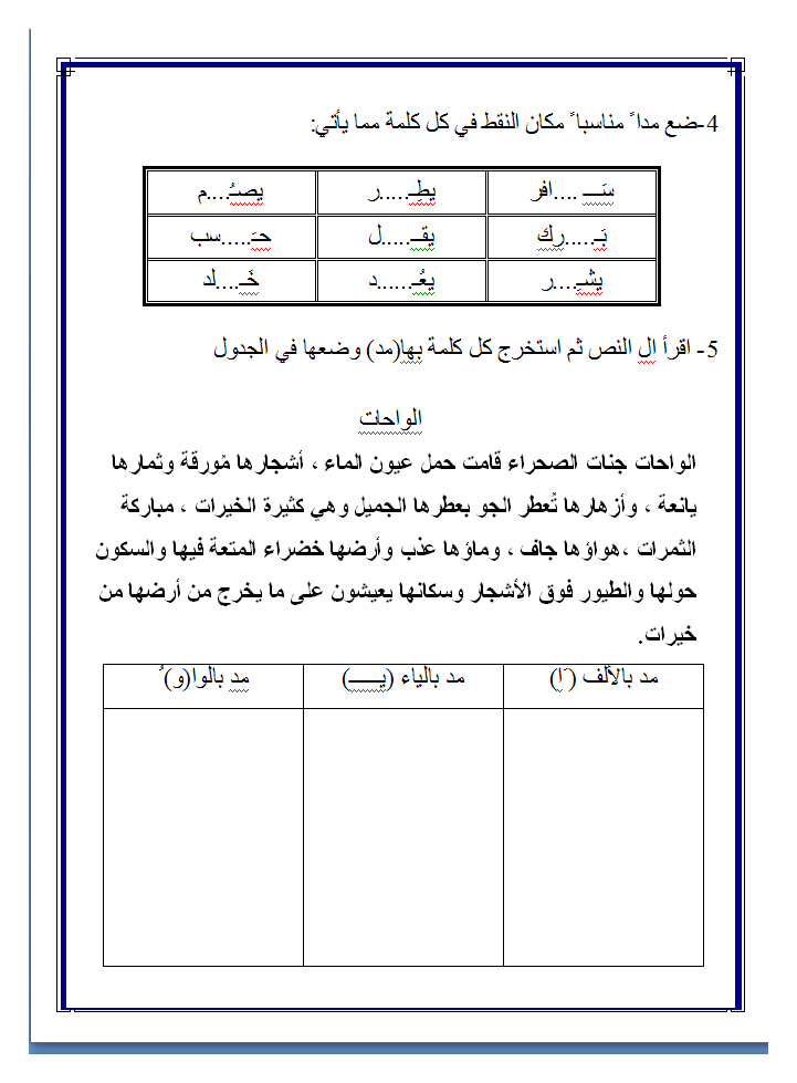 مشروع برنامج الكتابة Microsoft Word للصف الثاني مدرسة العصماء بنت الحارث للتعليم الأساسي والثانوي
