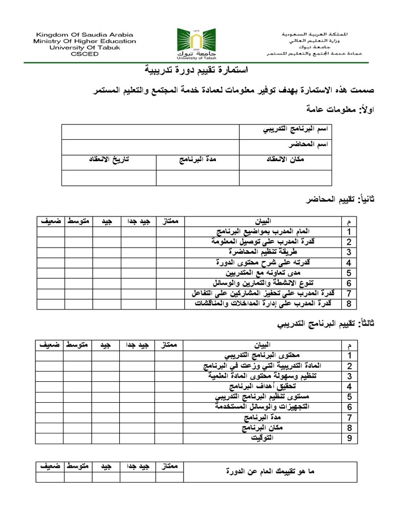 استمارة تقيم دورة تدريبية Docx