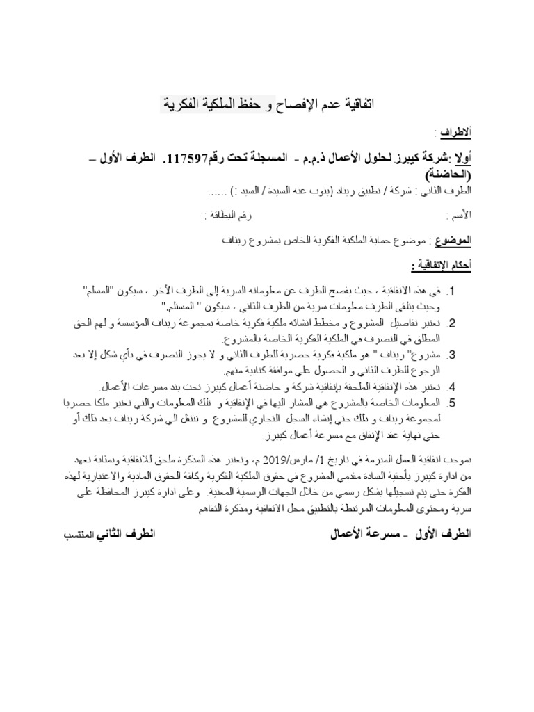 اتفاقية عدم الإفصاح و حفظ الملكية الفكرية Autosaved