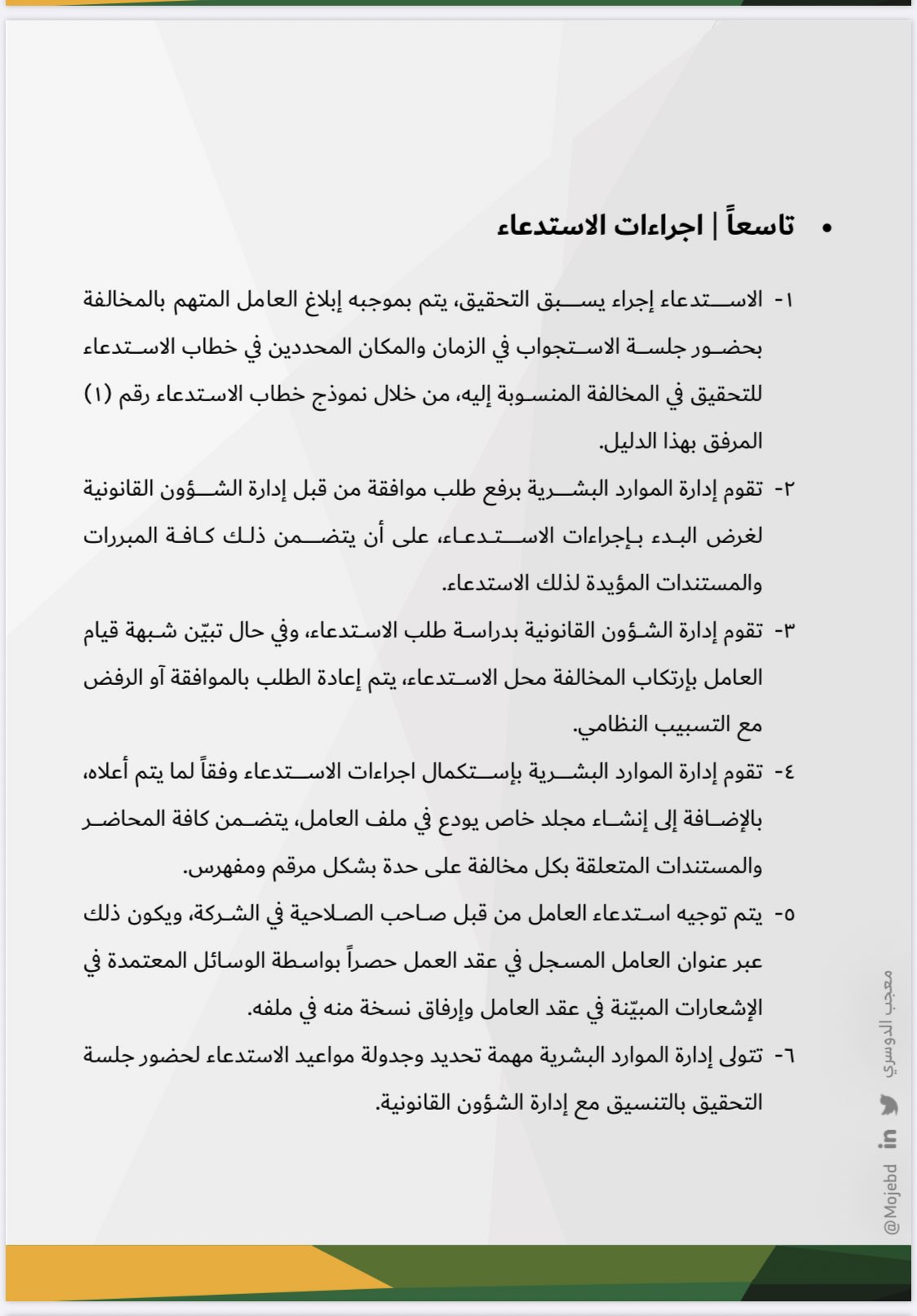 مختارات عدلية בטוויטר دليل الاستدعاء والتحقيق وفق نظام العمل ولائحته التنفيذية قواعد اجراءات نماذج إعداد معجب الدوسري عدد الصفحات 14 صفحة Https T Co Mf05l4kxcv