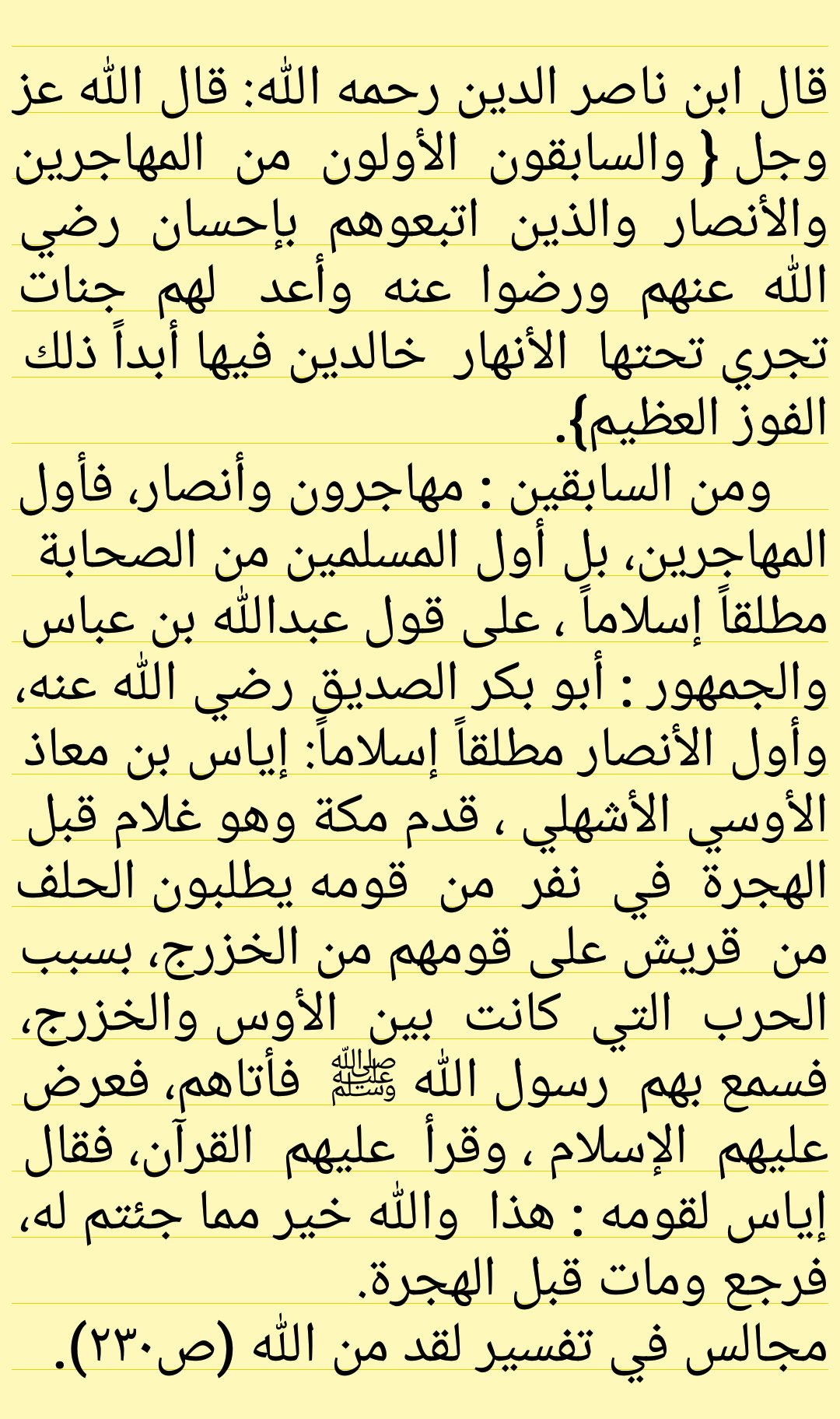 تفسير الآية والسابقون الأولون من المهاجرين والأنصار والذين اتبعوهم بإحسان موسوعة ورقات العربية